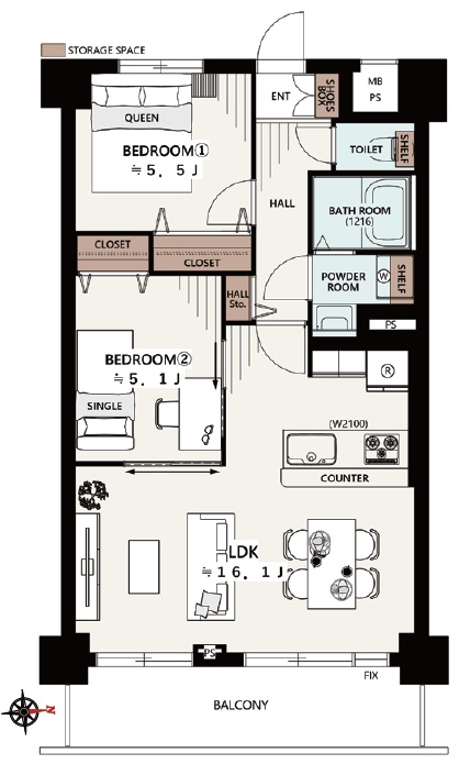 - 2LDK 専有面積 60m² バルコニー面積 9m²