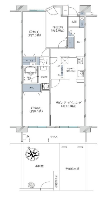 - 3LDK 専有面積 72m² バルコニー面積 9.6m²