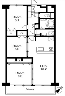 - 3LDK 専有面積 69.6m² バルコニー面積 6.96m²