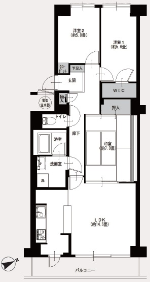 - 3LDK 専有面積 77.38m² バルコニー面積 7.2m²
