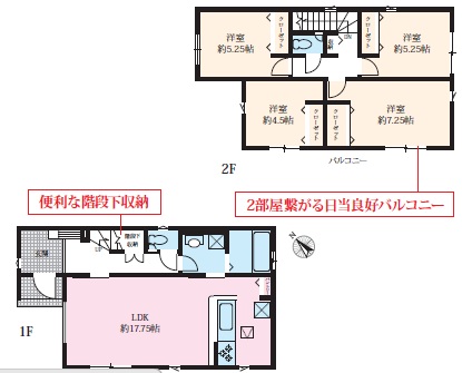 子供がのびのび走り回れる4LDKの物件です。カースペース二台可で週末のお買いが便利です。二階には二部屋に広がるにバルコニーがあるので、時間帯によって洗濯物干し場所を変えてみてはいかがでしょうか。