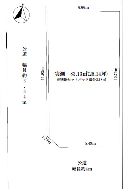 | 接道状況 | 角地 西 幅員3.6m 南 幅員4m |