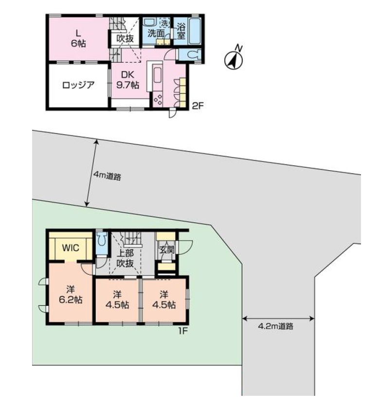 | 接道状況 | 角地 北10m 幅員4m 東9.2m 幅員4.2m 位置指定道路 |