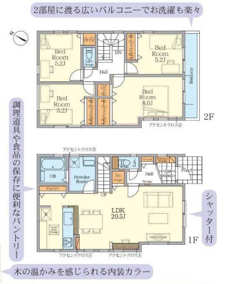 「車2台×4LDK」が生む、家族全員のゆとり。夫婦それぞれに車を、子供たちに個室を。理想の暮らしがここから。来客時も安心の2台駐車。4LDKのゆとりが叶える、一歩先の新生活。
