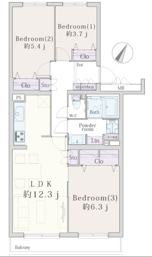 - 3LDK 専有面積 64.51m² バルコニー面積 5.75m²