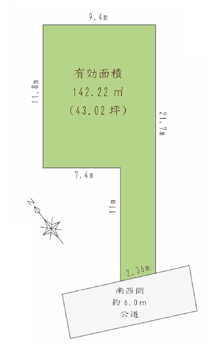 | 接道状況 | 一方 南西2.3m 幅員6m |