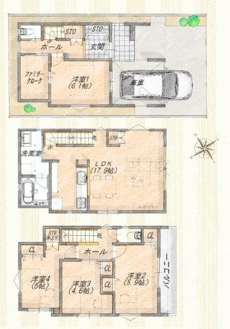 - 4LDK 土地面積 72.41m² 建物面積 116.61m²