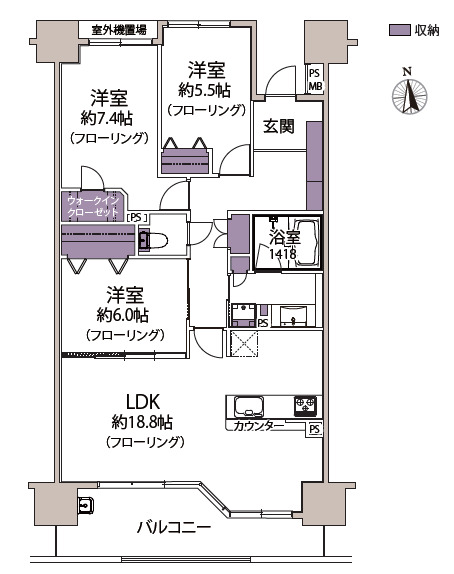 - 3LDK 専有面積 87.75m² バルコニー面積 12.1m²