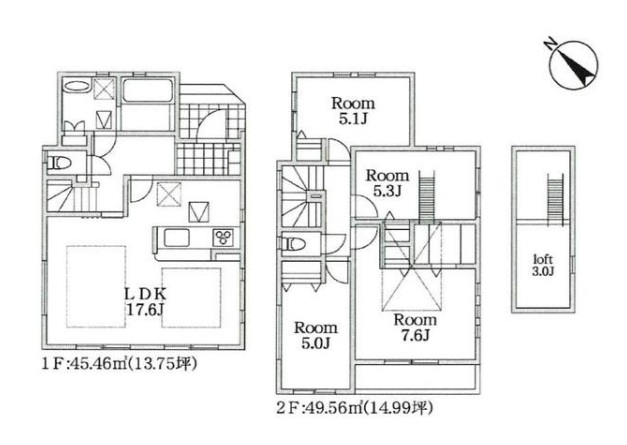 3SLDK 土地面積 62.22m² 建物面積 113.76m²