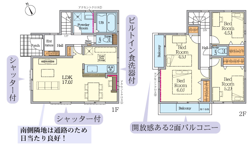 お買い物に便利な住環境♪駐車2台可・横に並べて停められる並列駐車でいつでも自由に車を出し入れできます!ゆとりのリビング・収納豊富・洋室は3部屋が6帖以上・2面採光で風通し良好☆