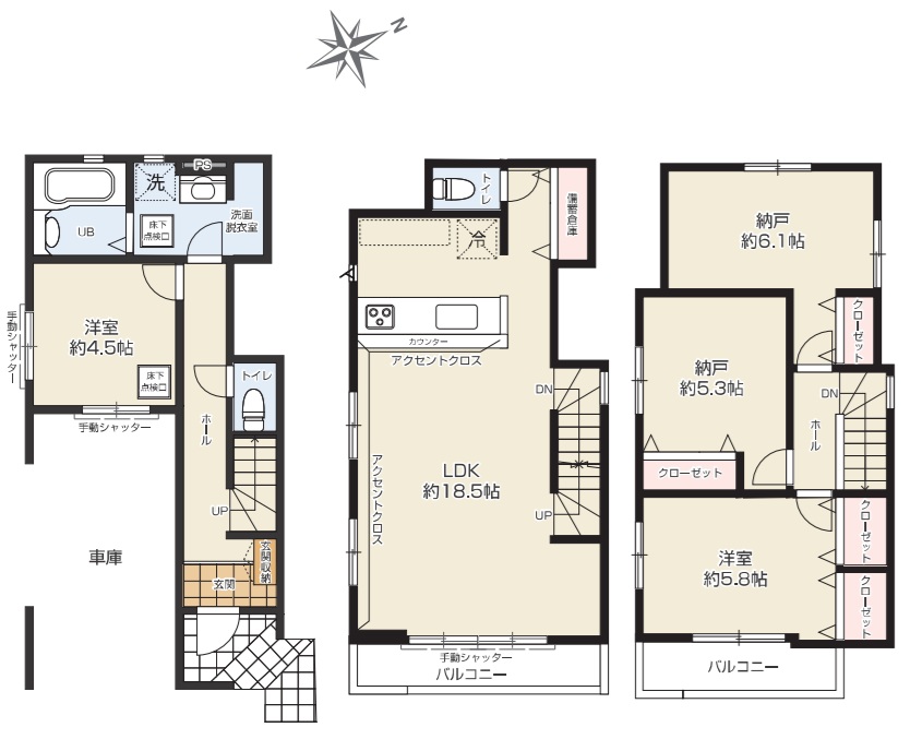3SLDK 土地面積 62.22m² 建物面積 113.76m²