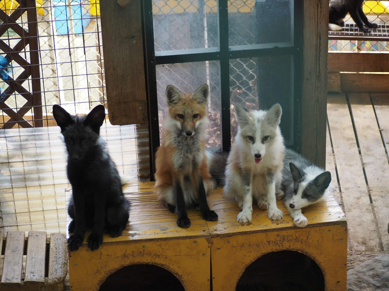 リードで繋がれた人懐っこいキツネさんやまだ大人の群れに入れない子ギツネちゃん、ヤギ、ウサギなどの他の動物たちが出迎えてくれました!