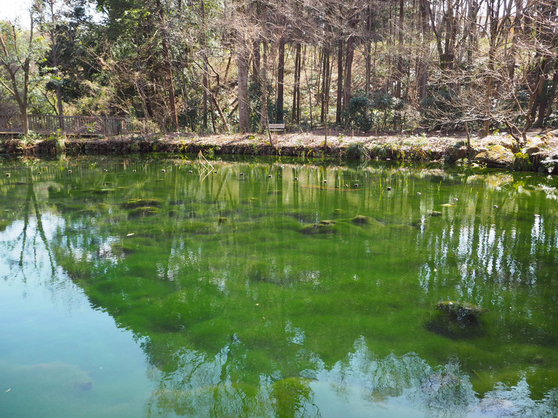 湧き水が流れている池なので、水が透き通っていて晴れの日は水草や苔が綺麗に見えます