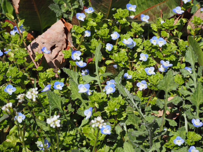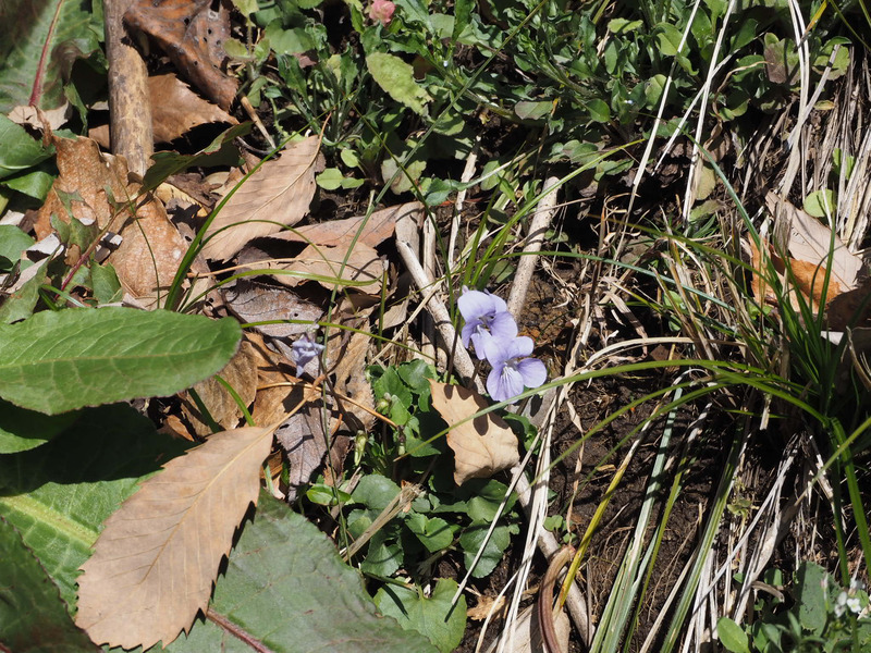 池の近くでオオイヌノフグリとスミレがひっそりと咲いていました!小さくて可愛くてほっこり…