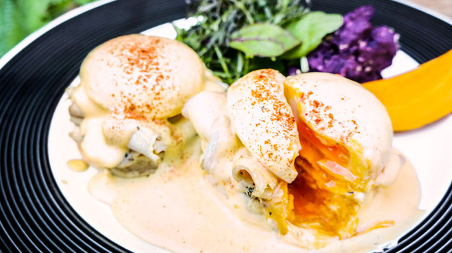 卵がとても柔らかそうに乗ったソースたっぷりのエッグベネディクト