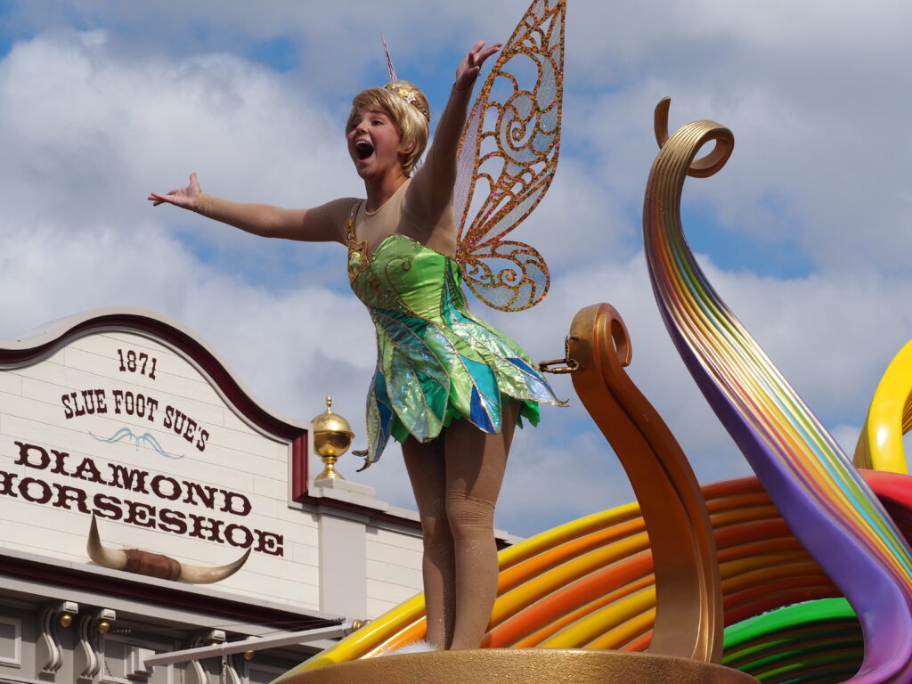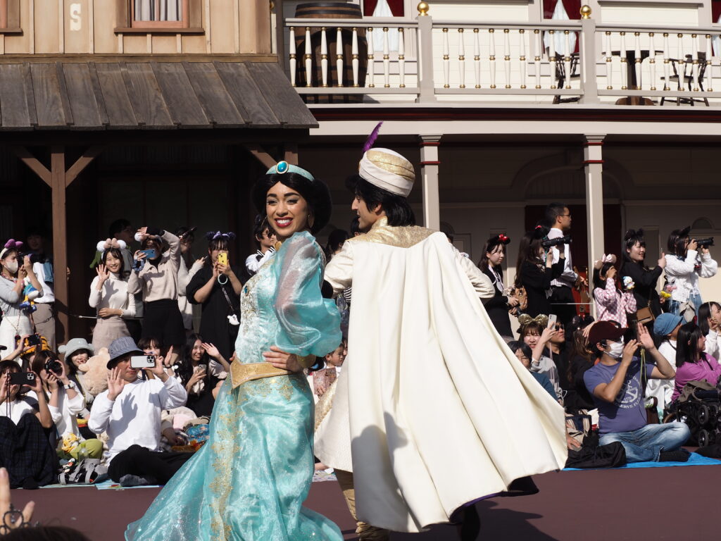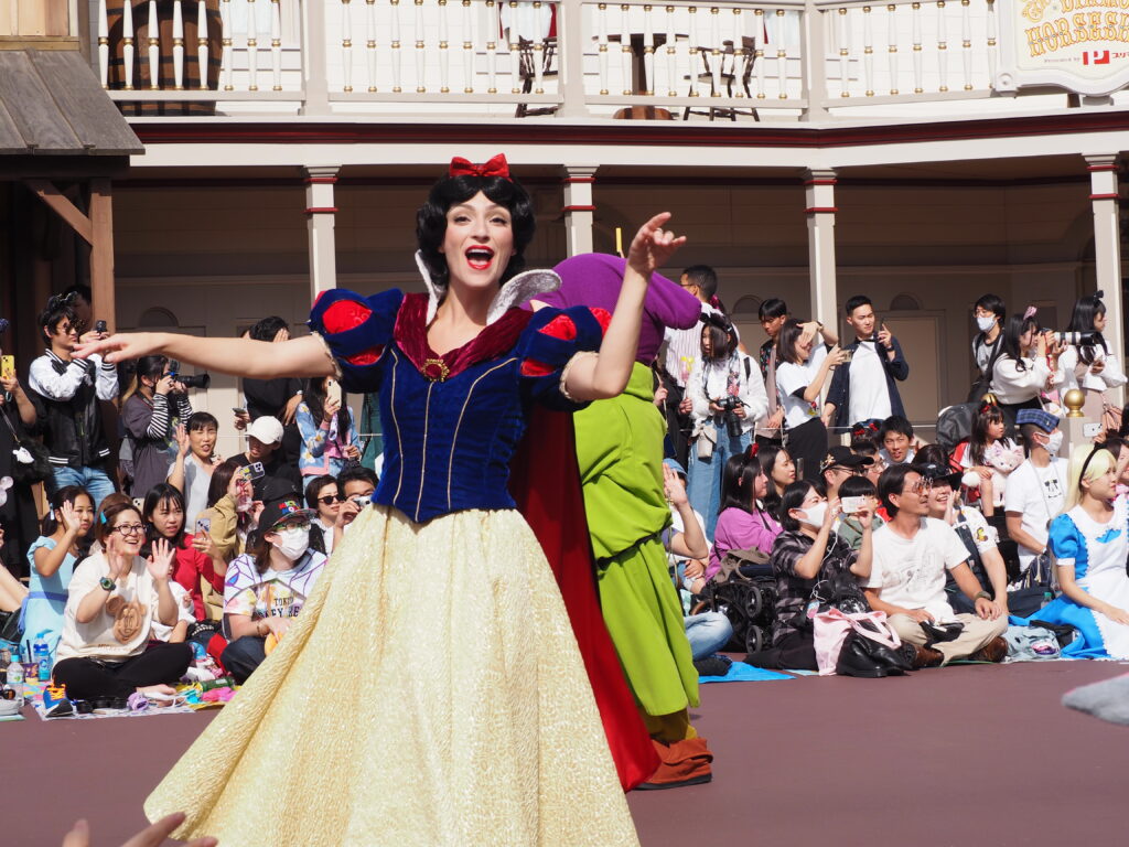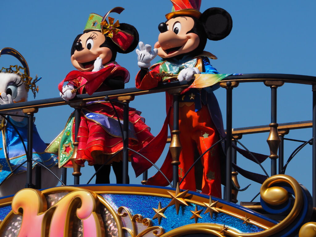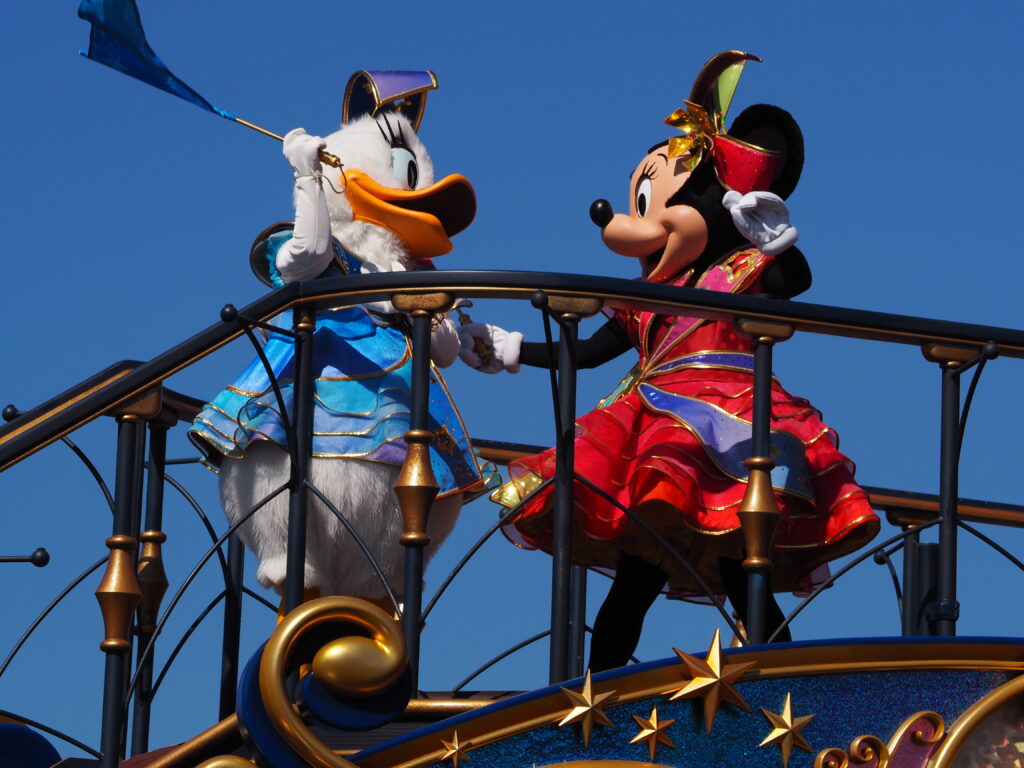 ホテル宿泊者特典で通常開園時間の15分前に入園し、なんとかパレード鑑賞場所を確保しました。