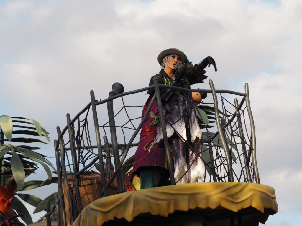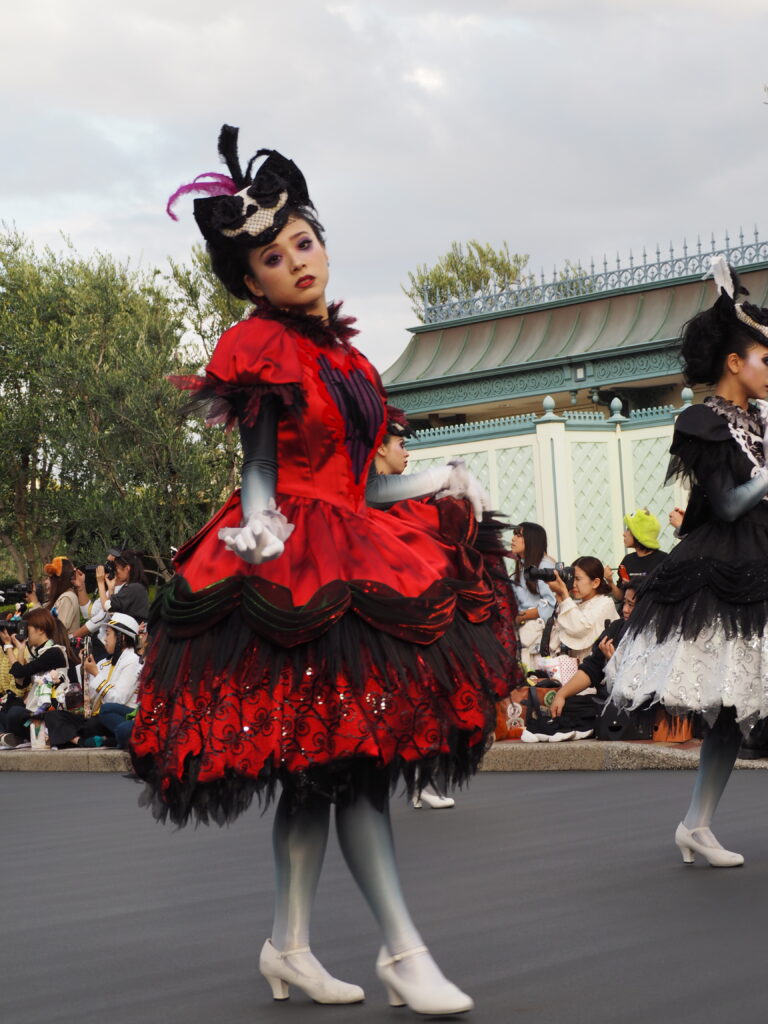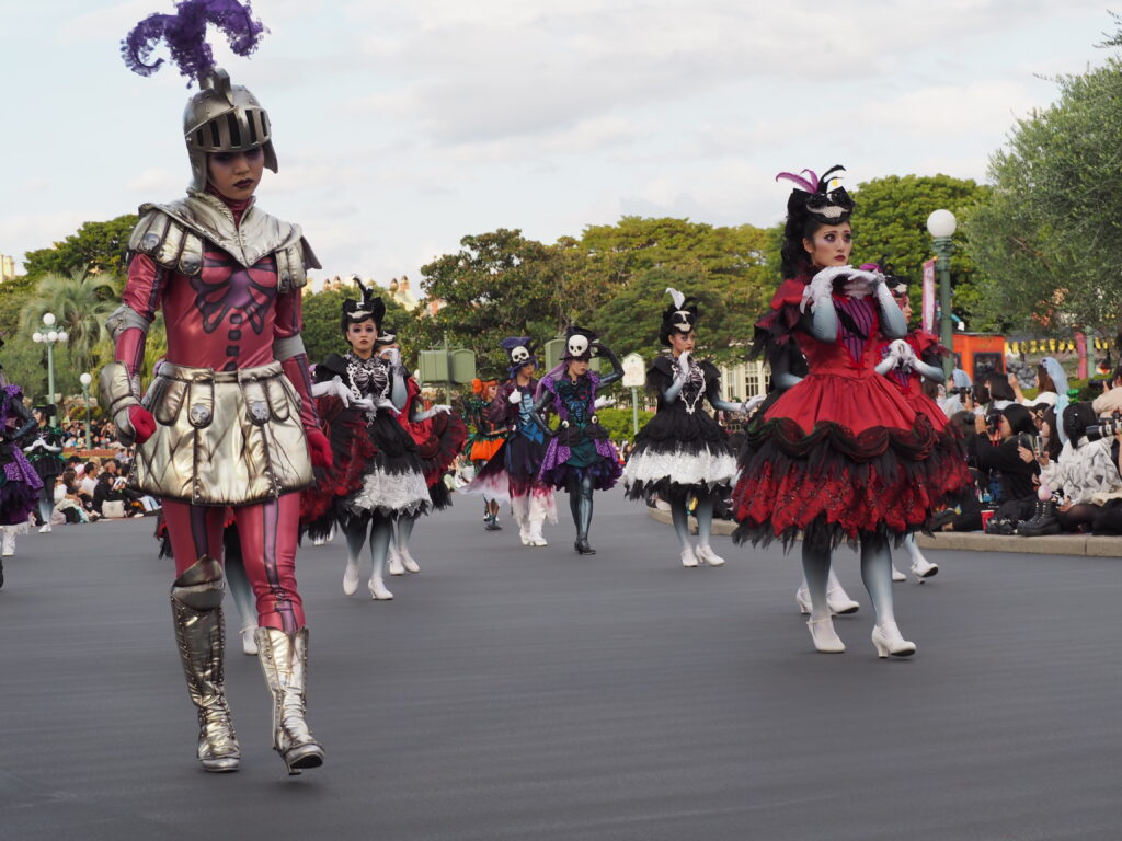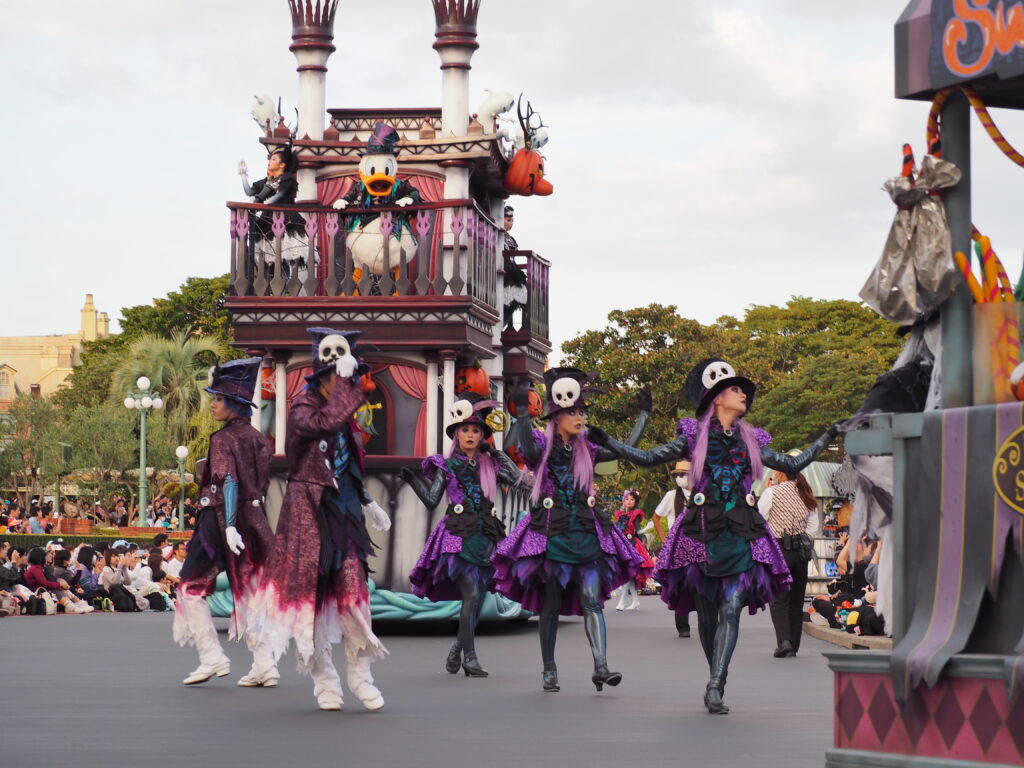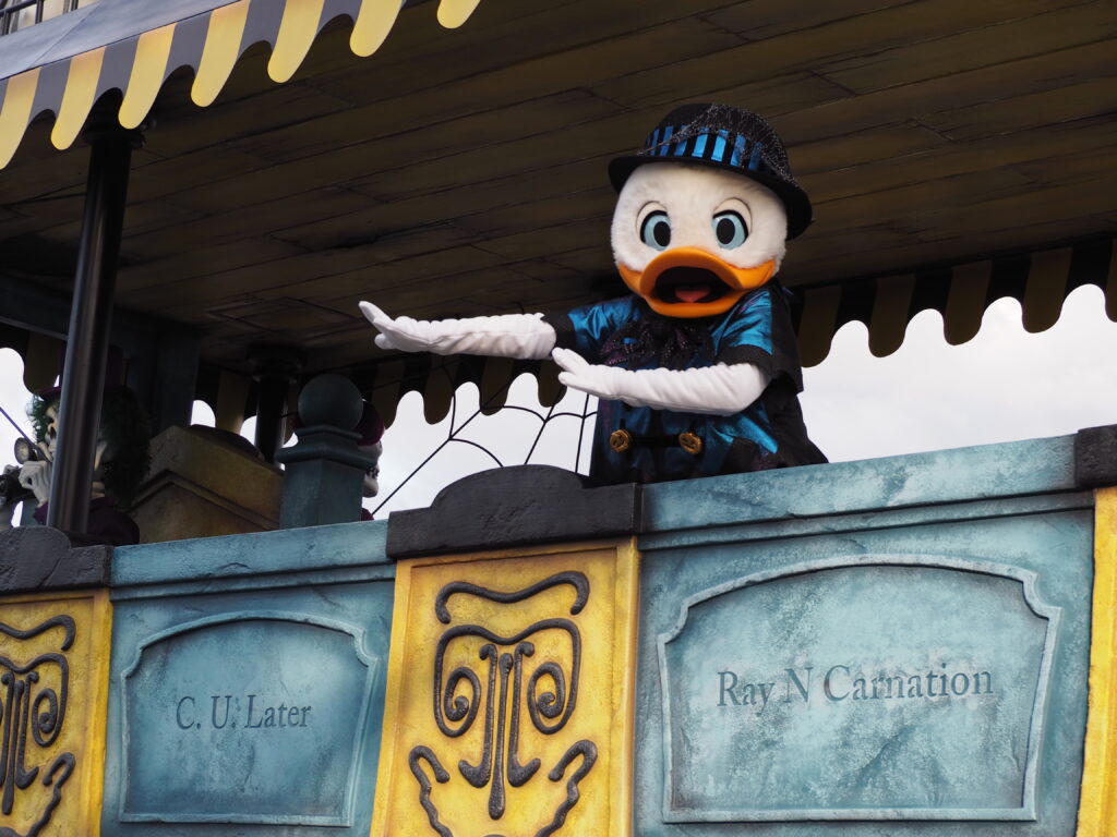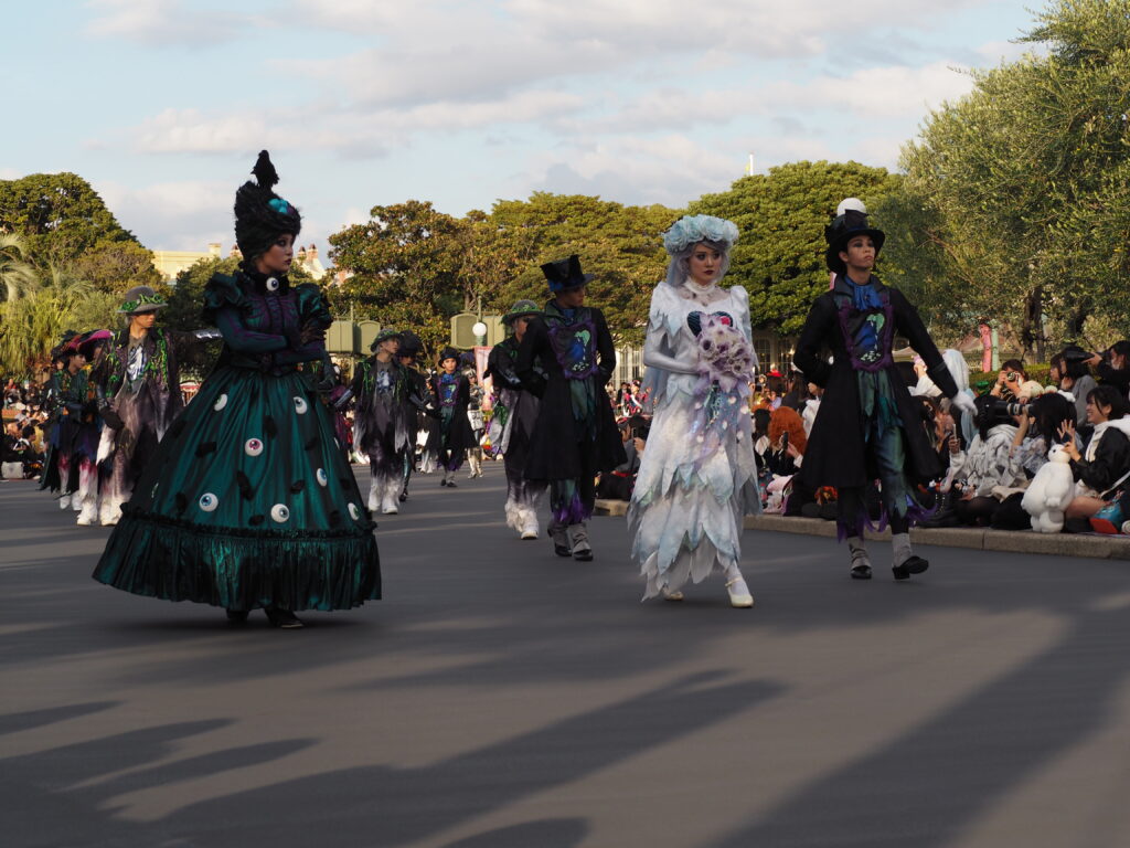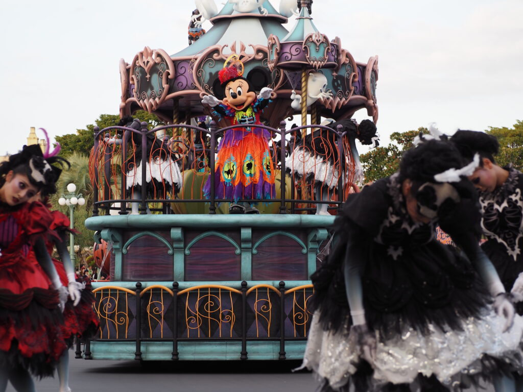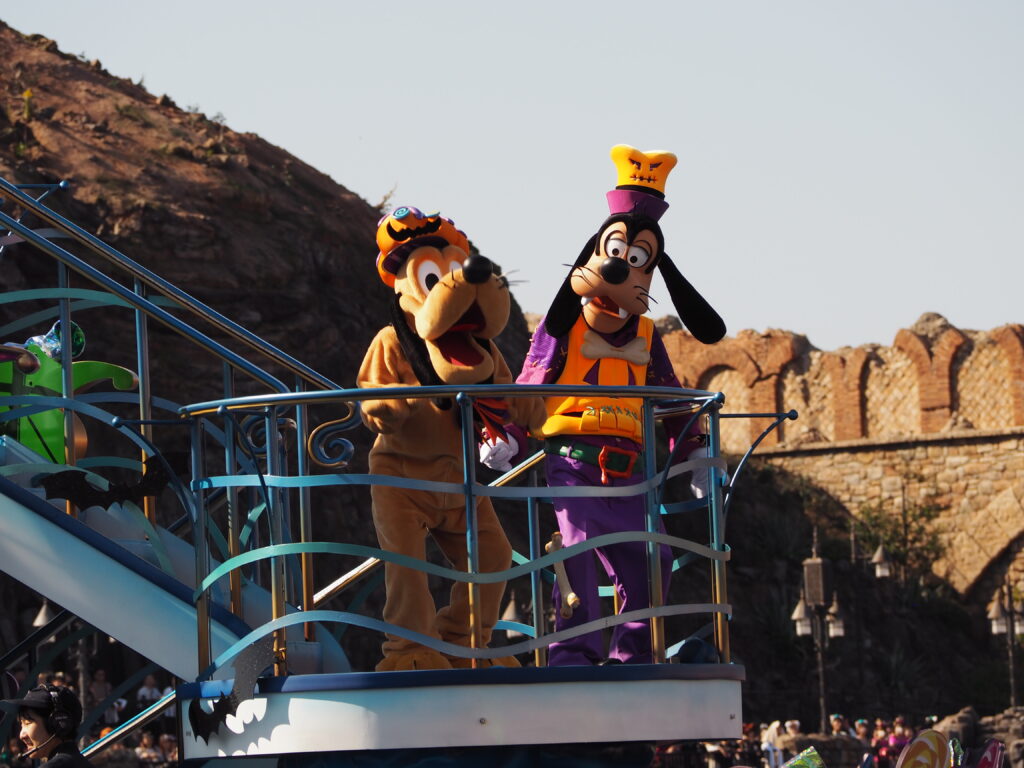 パレード後アトラクションを巡り、軽食を済ませていたらあっという間にスプーキーBoo!パレード開始時間の30分前になり観賞場所へ移動…。DPAという有料で鑑賞場所を確保できるサービスを利用したのですが、最前列で鑑賞できました!