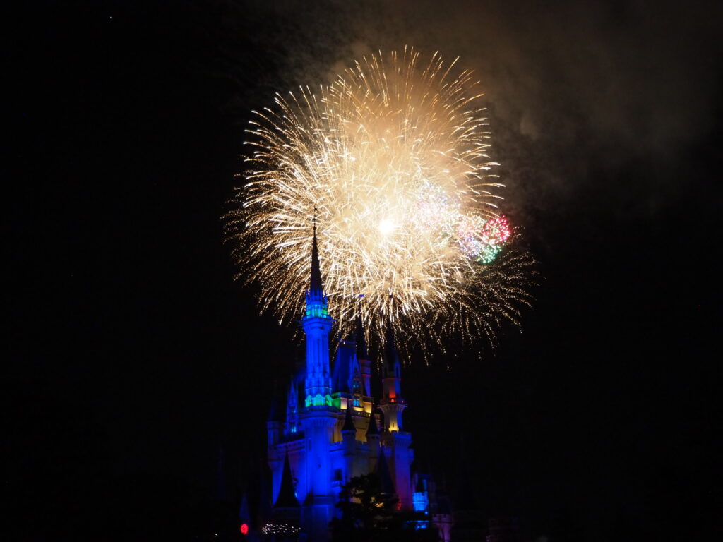 ライトアップされたシンデレラ城と花火がとてもキレイで感動しました!