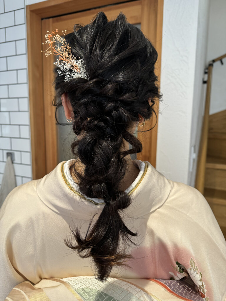 卒園式では、美容師さんのお友達にヘアセットと着付けをしてもらってから参加するという贅沢♡