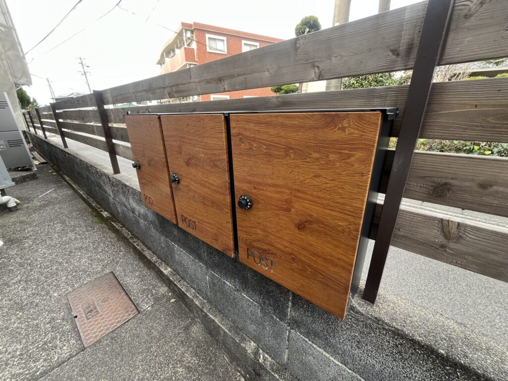 1階の階段付近には宅配BOXを取り付け以前の建物からは、想像が出来ないくらいにオーナー様のアイデアで物件を明るいイメージへと変更させました。