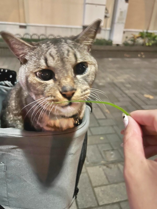 外の風の匂いを嗅ぐのが好きなので、お散歩に連れて行っているのですが