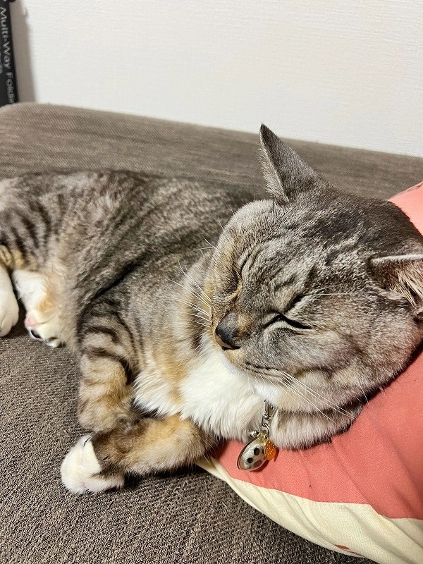 お散歩を堪能し、家に帰り餌を食べて満足すると横になります。