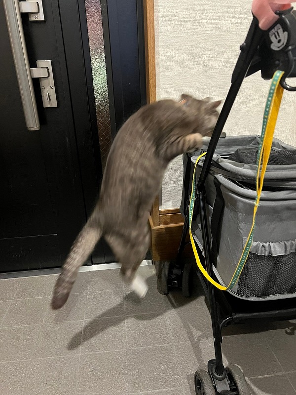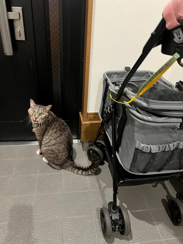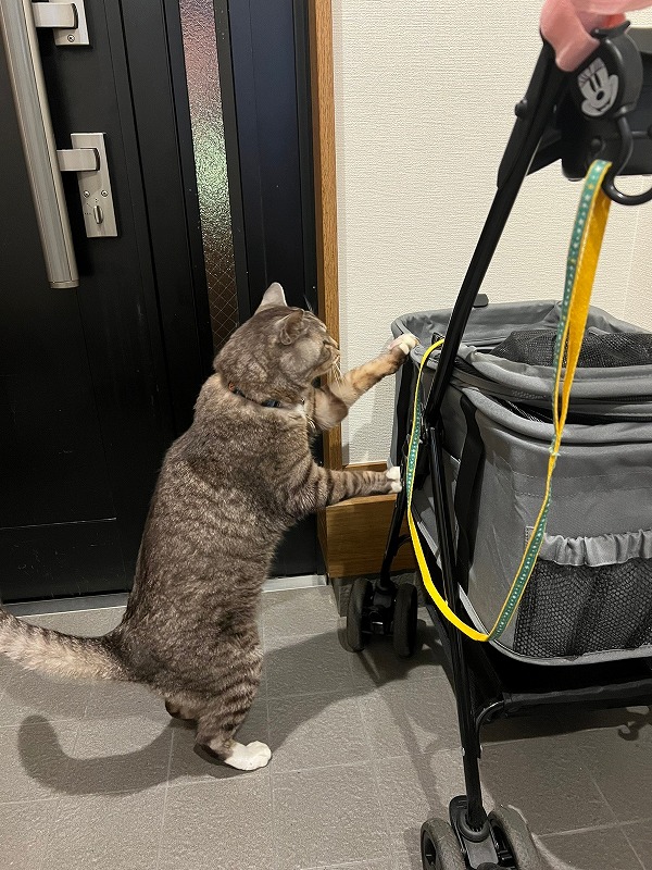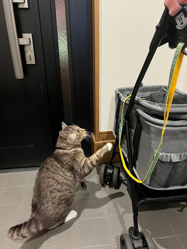 帰ってもすぐ玄関でまた外に行きたいとアピールします。