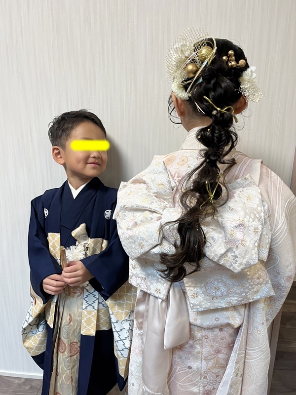 私の姉の息子No.2が5歳なので同じく七五三、No.1が10歳なのでハーフ成人式!ということで、みんなで着物を着て合同で行いました😊