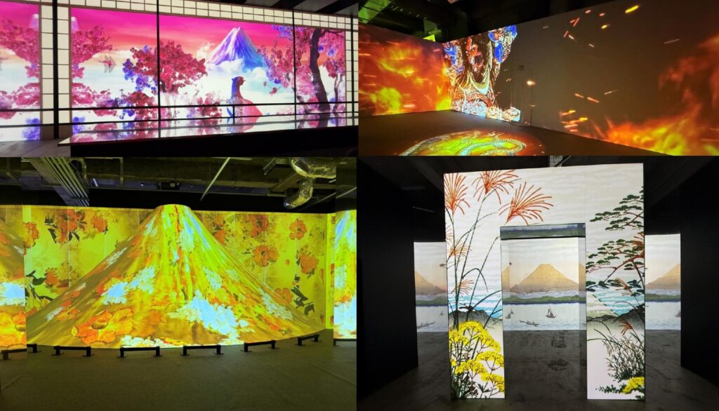 360°見渡す限り浮世絵の映像が流れる空間や様々な趣向を凝らしたブースがたくさんあり