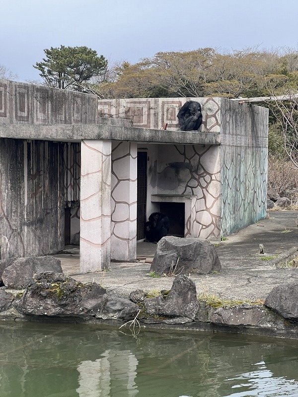 チンパンジーも寒くて丸まっていました。