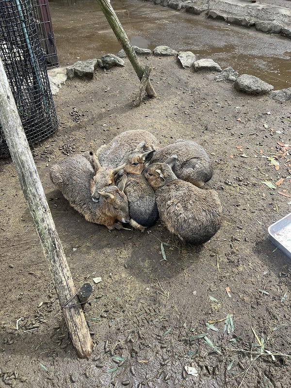 この日は曇りで寒かったので、動物たちは密集していました
