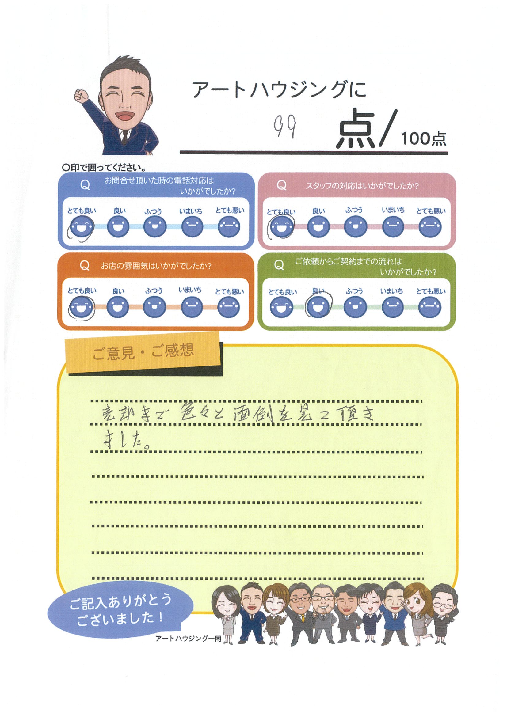 この度は不動産のご売却で弊社をご利用いただき、また、お客様の声にもご協力いただき誠にありがとうございました。