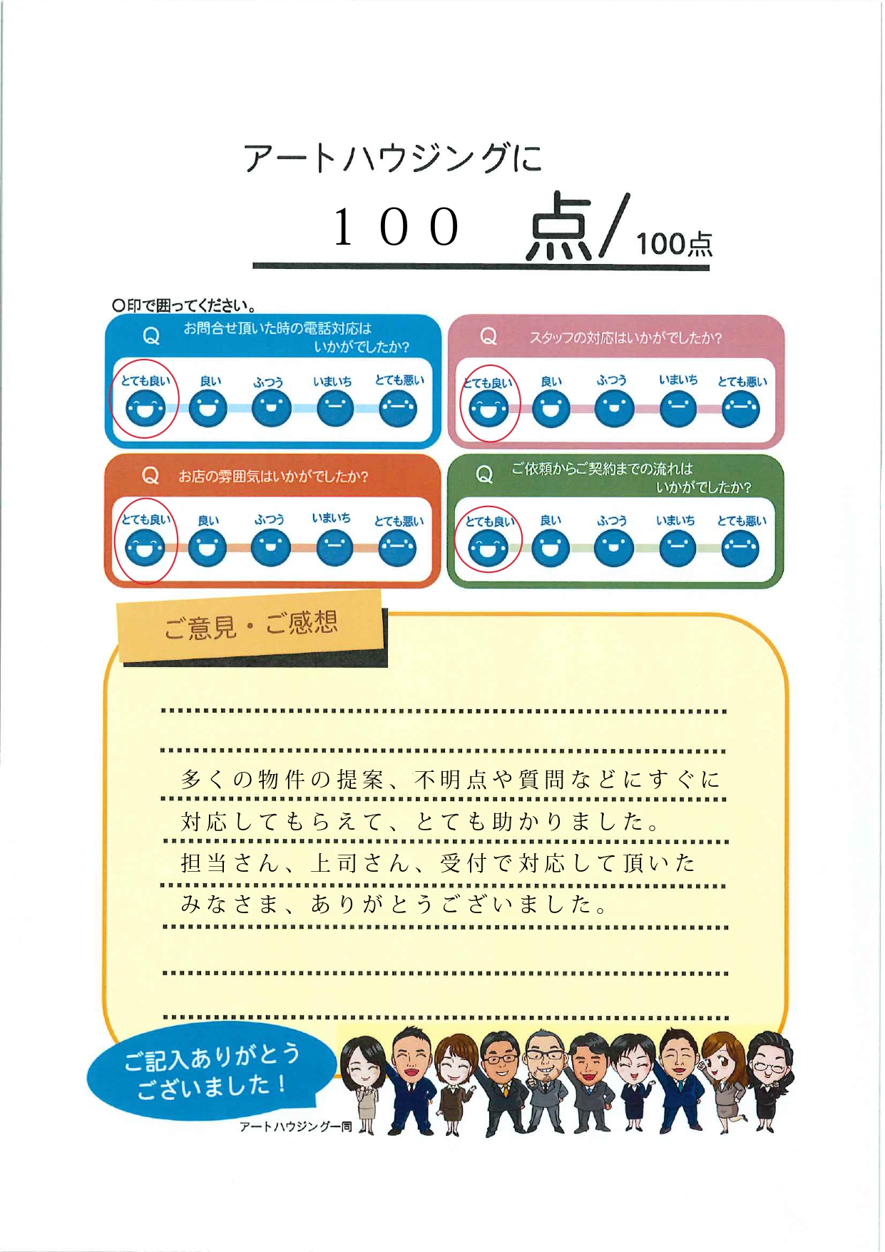 お客様の声をご記入頂き有り難うございました。インスペクションや水回り設備のリフォームについてとてもいい勉強ができました。