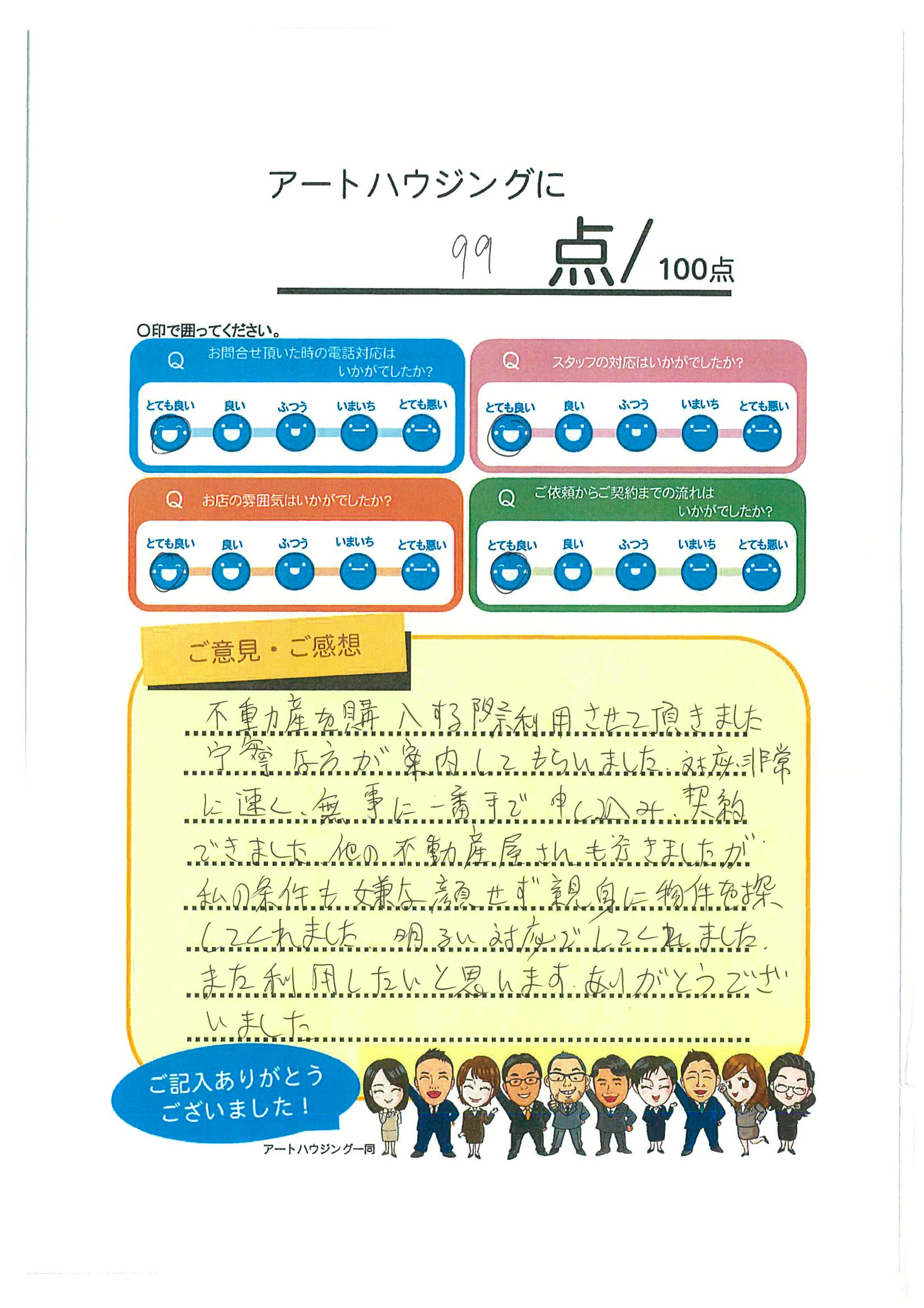 お客様がご希望通りの物件に出会うことができ、本当に良かったと思っております。