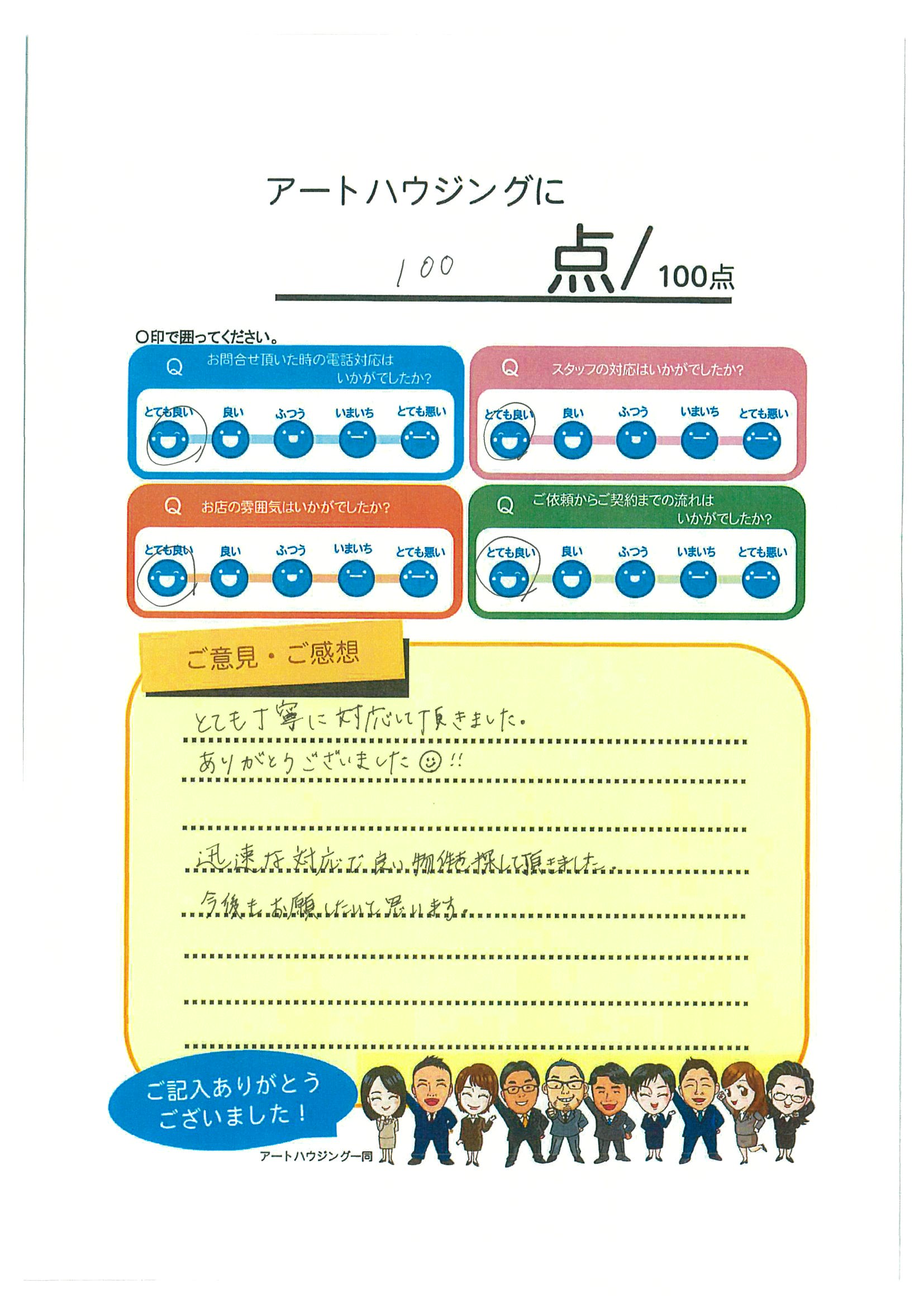 同い年だったこともあり、プライベートのお話で盛り上がることができたのもすごくいい思い出です。時間も限られている中でのご決断だったと思いますが、無事にご希望の条件でのお住まいが見つかってよかったです。