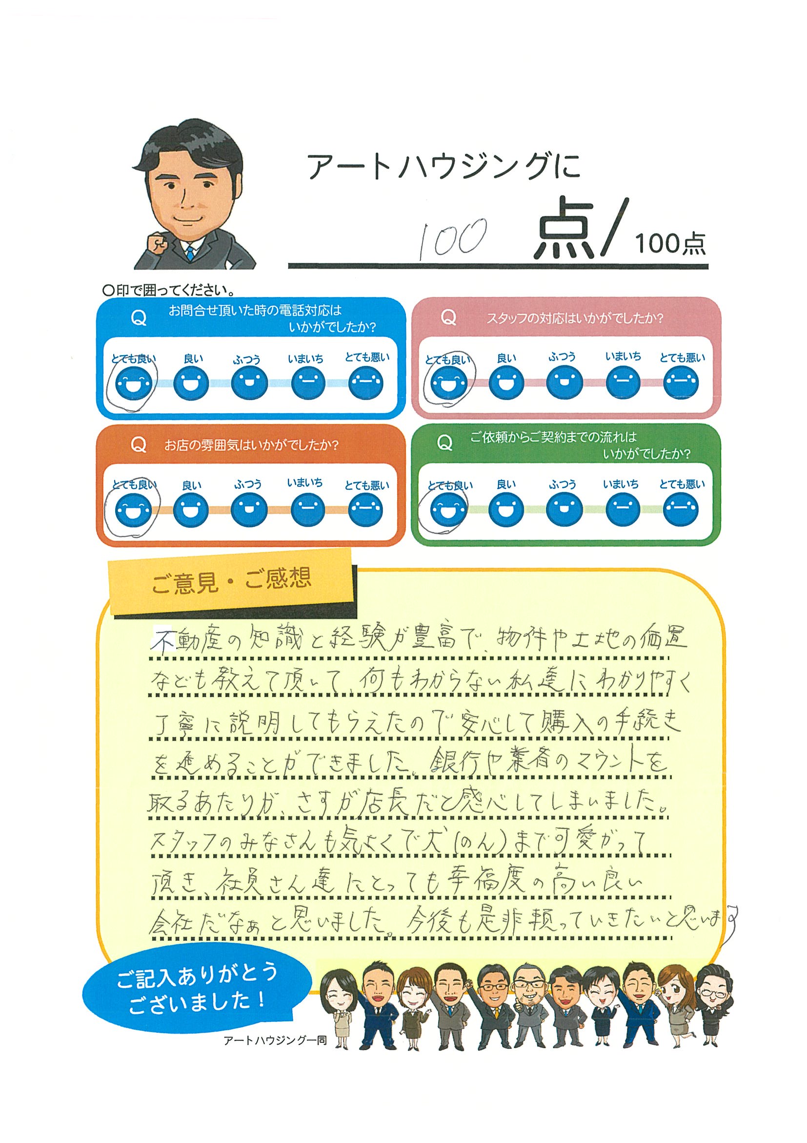 現在のアパートのお家賃と比べながら、支払い的にも安価なご提案ができ、タイミングにも恵まれ、また、M様のフットワークも軽く、無事ご成約に繋がりました。