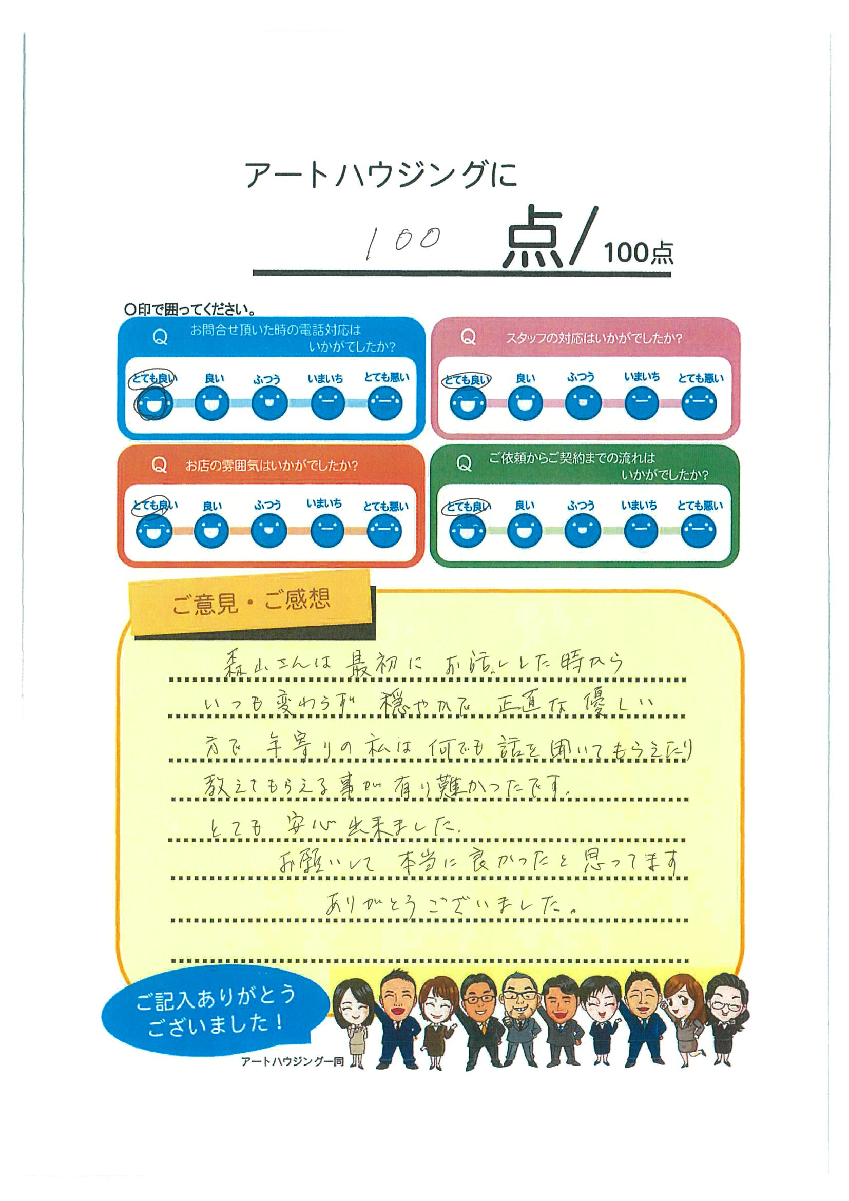 お客様とは私がお客様のお隣の家の旗を撤去しているときにお声がけ頂き、そこでの会話からご自宅の売却を任せて頂きました。ご自宅の査定の際はお昼ご飯を作って、振舞って頂きました。とてもお美味しくパワーがみなぎってきました。そして、おさがりのお洋服も沢山頂きまして有り難うございました。彼女が喜んでおりました(笑)