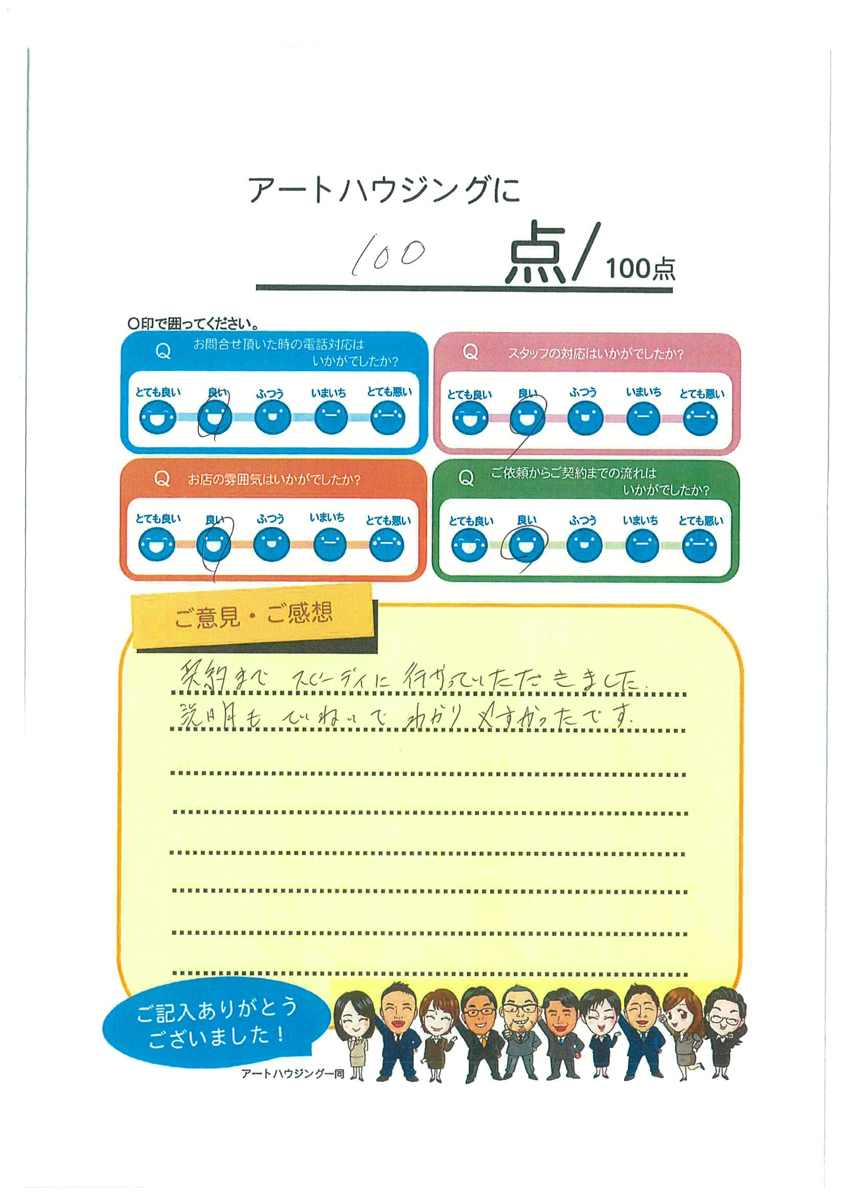 この度は、ご成約おめでとうございます。そして満点採点有難うございます。