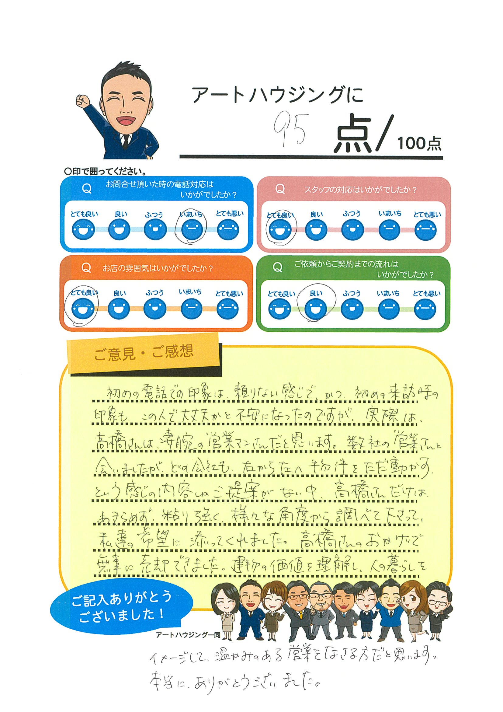 この度は不動産のご売却で弊社をご利用いただき、また、クチコミにもご協力いただき誠にありがとうございました。