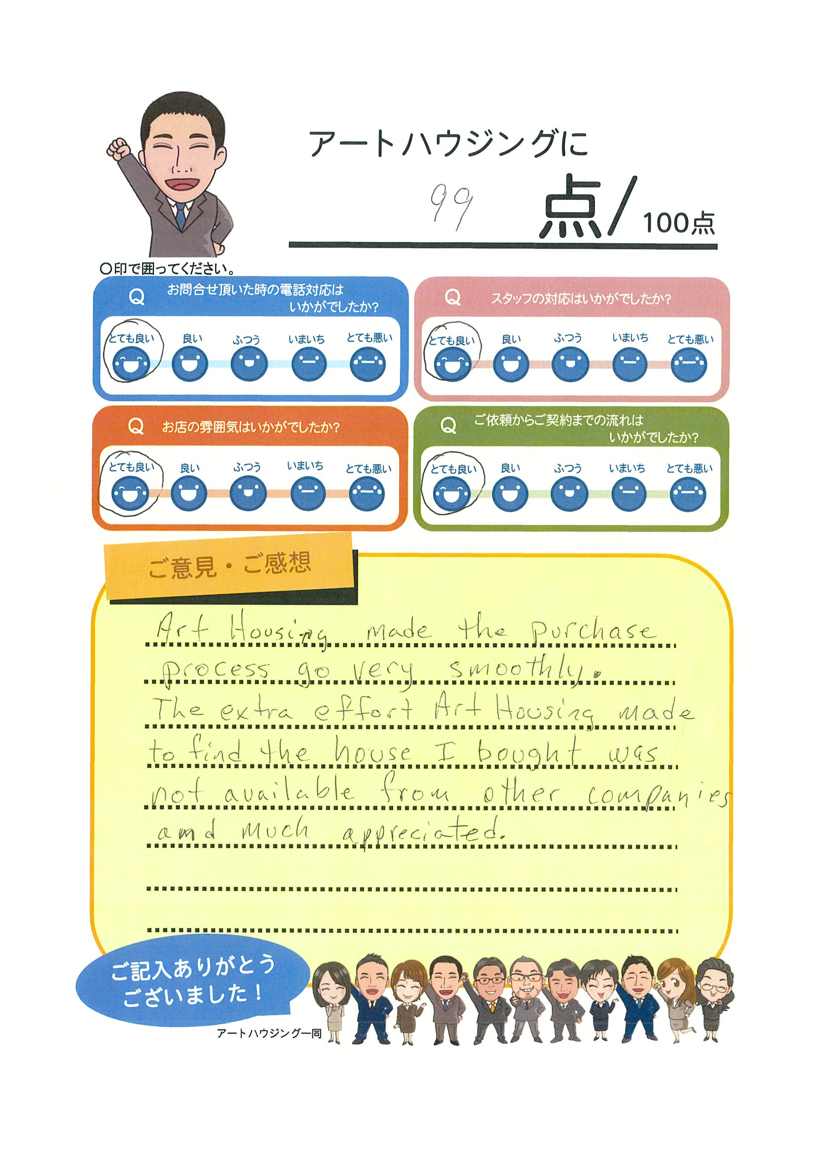 初めてお会いさせて頂いてから約4か月間、様々な物件をご内見頂き誠に有り難うございました。